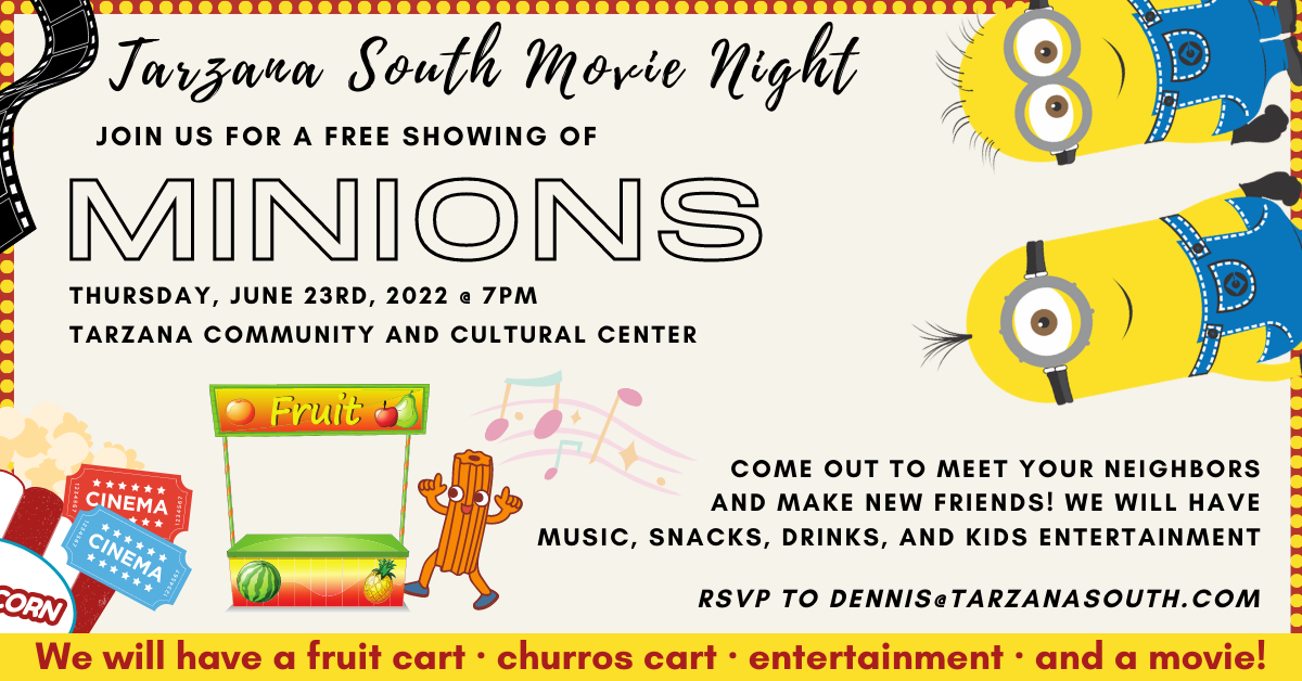 Join us Thursday, June 23rd at 7pm, for a showing of Minions at the Tarzana South Community and Cultural Center